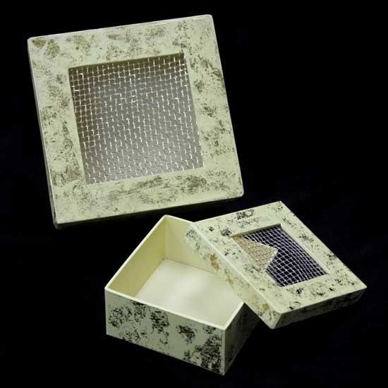 The rigid box set is made of finely dyed wood-free paper for a unique touch. The net window on the cover allows a glimpse of the content. This delicate box set makes a chic addition on desks for storing your scattered trinkets.