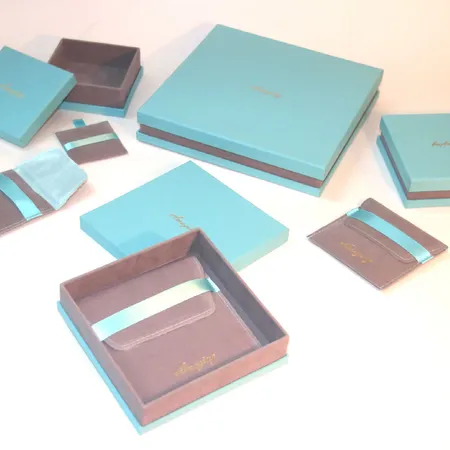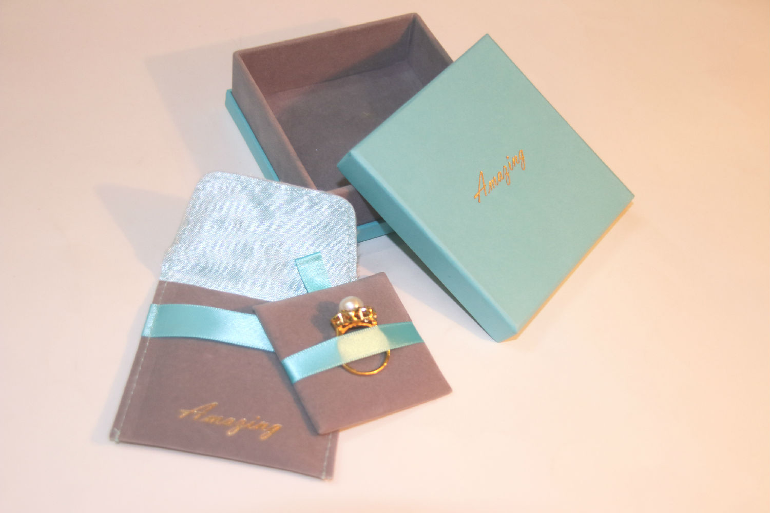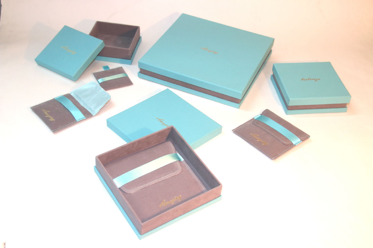 * Sturdy Paper Box covered with Fancy Paper bundled with Soft Pouch