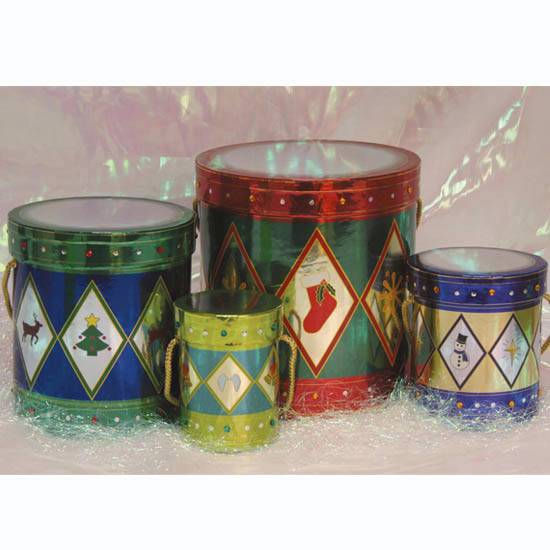 These cylindrical gift boxes are printed with adorable Christmas patterns. They are made of high-quality cardboards with sleek surfaces. Each box is decorated with a twisted handle for easy carrying. These eye-catching boxes are perfect for packaging chocolates, biscuits, cookies, etc.