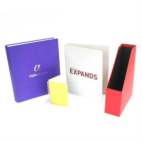 This paper gift set features a magazine holder, a folder, a photo album and a notebook. The surface is ready for hot stamping, silkscreen printing and offset printing. This stationery set simply makes a great thank you gift for business occasions.