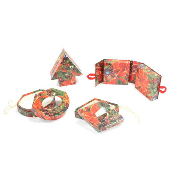 This packaging set features boxes with different fancy designs, coming in an arrow, roll-open, window-displayed and hanging construction. The surface is printed with ribbon and Christmas tree detailing for a festive touch. This box set is simply great to disclose heart-warming surprises at Christmas.