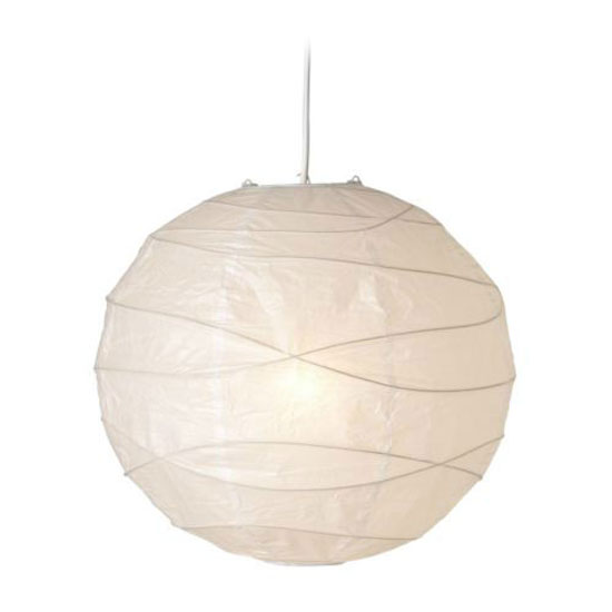 This is a pendant lamp with the design of a spherical paper lantern. The lantern is made of rice paper and steel wire for a neat and traditional design. The paper lampshade helps diffuse the pleasant warm light to your home.