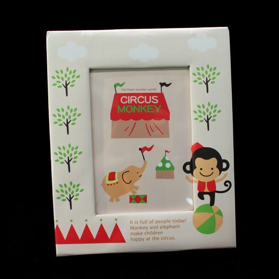 The rectangular shaped photo frame features a classic rectangular design. The white frame boarder is printed with colorful cartoon patterns that appeal to little kids. Enhance children's room decoration with the playful design of this photo frame.