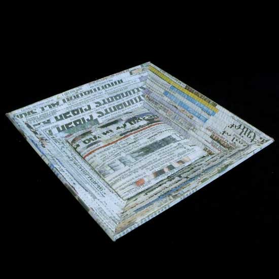 This novel product is made of old newspaper. It comes in a square style for a special touch. The newspaper is connected by fishing wires. It makes an eco-friendly decoration as well as a pragmatic product.