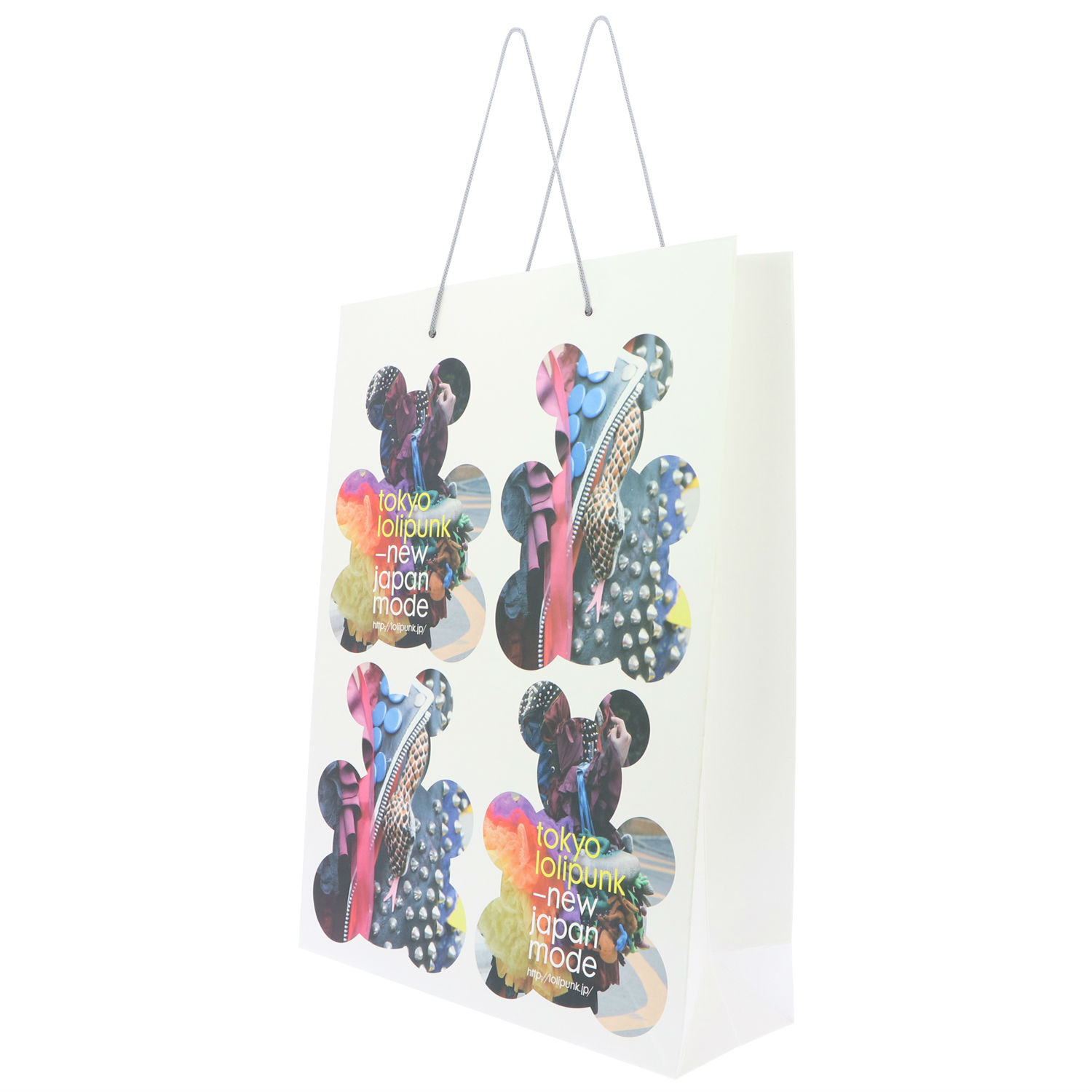 This shopping bag is made of paper and flaunts a lightweight yet durable design. It has a rectangular compartment for storage and is printed with colorful teddy bear patterns. The shopping bag has a pair of slim handles for easy carrying and is suitable for packaging a wide variety of products.