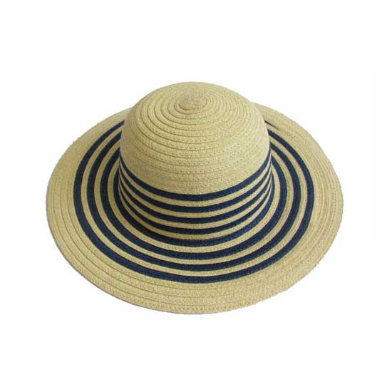 This is a paper straw hat that comes in a floppy style. Made of 100% paper, this hat is lightweight and breathable. With black ripple patterns, this fashionable paper straw hat is great for the beach.