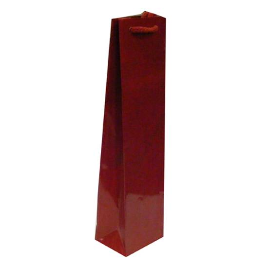 This is a beautiful paper wine bag. The paper wine bag is designed with a vertical cutting fitting a standard wine bottle. The brown colored bag comes with a brown colored strap for carrying.