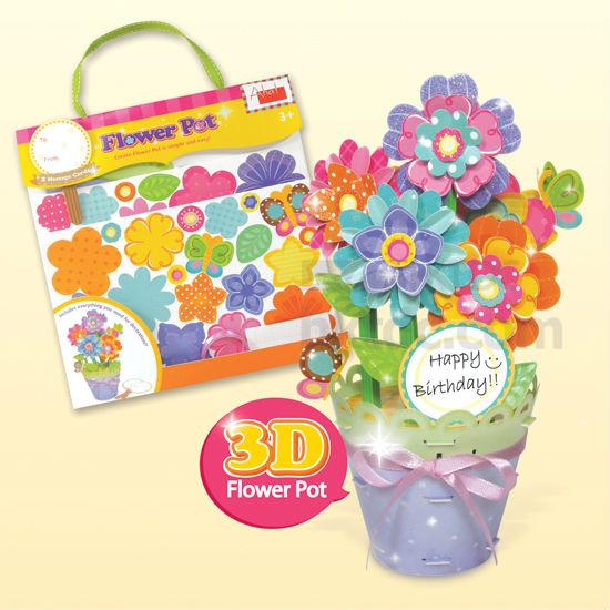 This paper craft set features a 3D flower pot design with glittered petals and message cards. Decorative and easy to make, it can be used on birthdays, weddings or other special occasions.