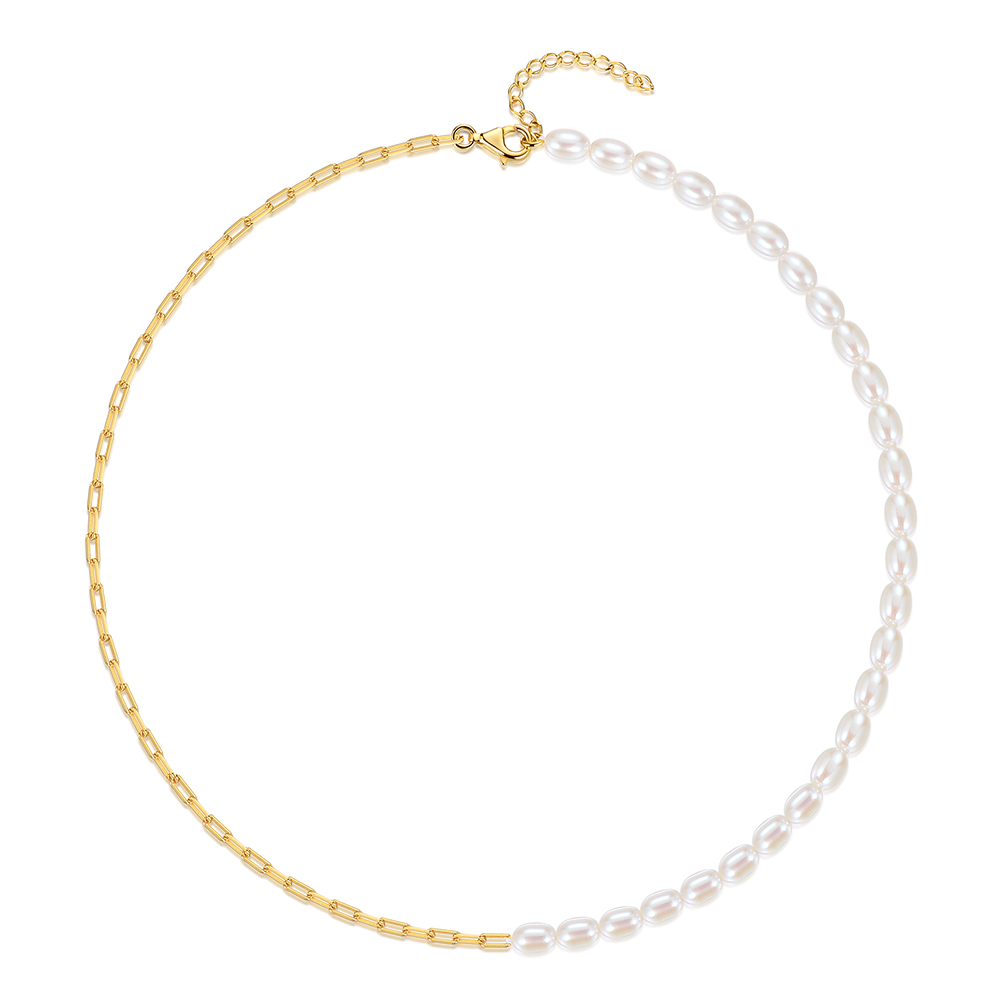 Sterling Silver Necklace with 5-5.5 Mm Oval Freshwater Pearl, Champagne Gold Plated