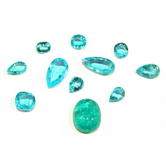 The outlined Paraiba tourmaline series in this picture flaunts assorted multi-facet cutting styles. Each tourmaline stone is exquisitely polished and processed to promise a precise look. This tourmaline stone series is ideal to decorate necklaces and necklaces with brilliance.