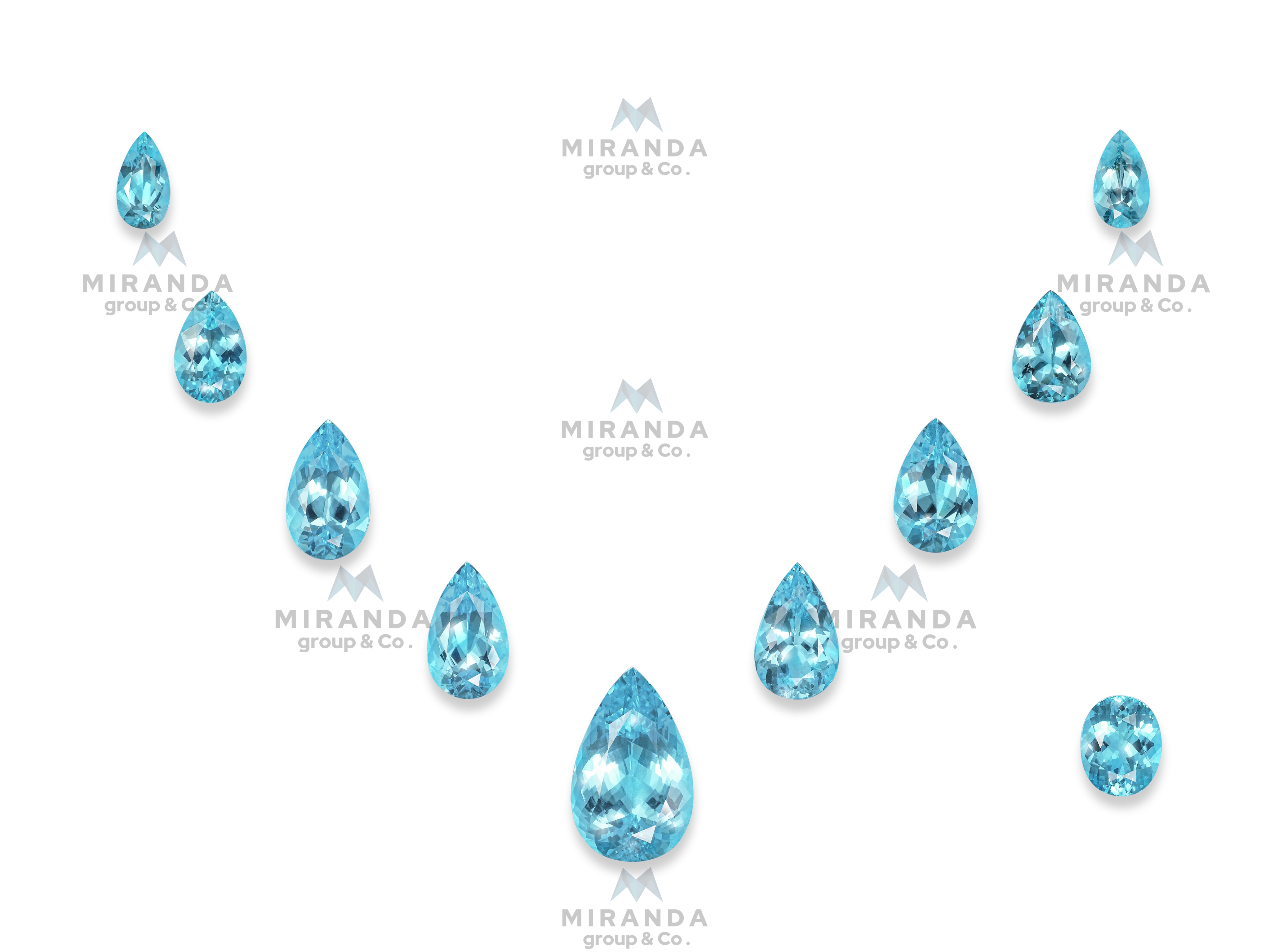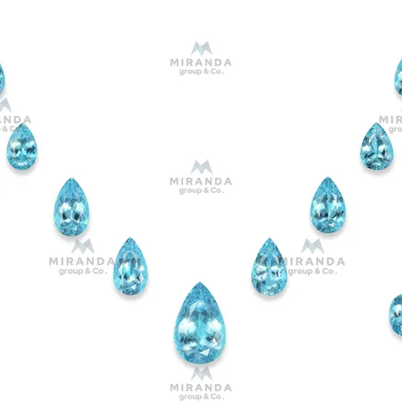 Exquisite Color Spectrum: An exquisite selection of natural Paraiba tourmalines in a perfectly matched set of 9 pear-shaped gems and 1 oval-shaped gem, hand-selected for their electrifying neon blue-green hues and exceptional clarity.