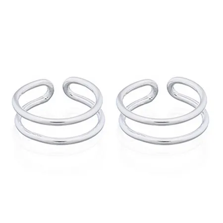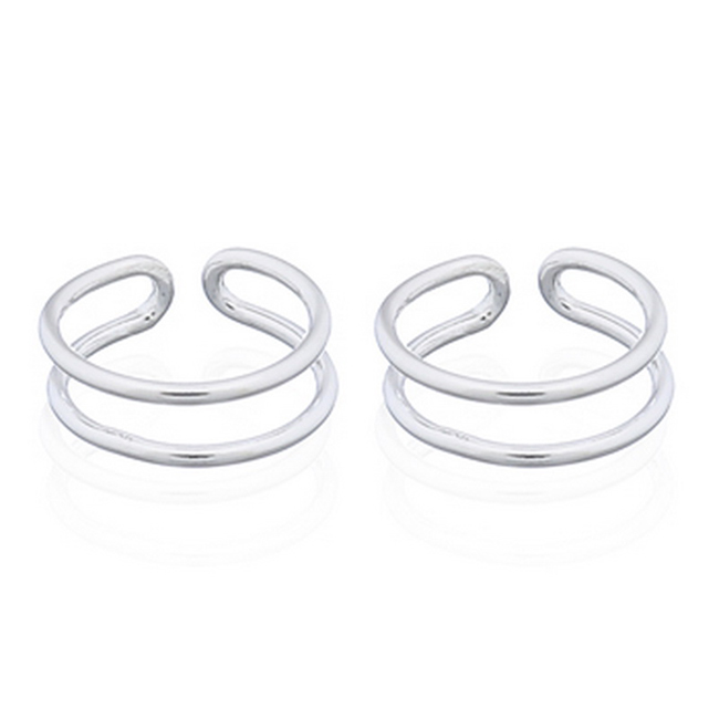 Parallel Lines Polished Silver Wire Ear Cuff Earrings
