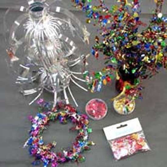 Featured here is a collection of party favor in fancy colors. These decoration items add extra joy to any events. Confetti, spray, wire garland and banners are available.