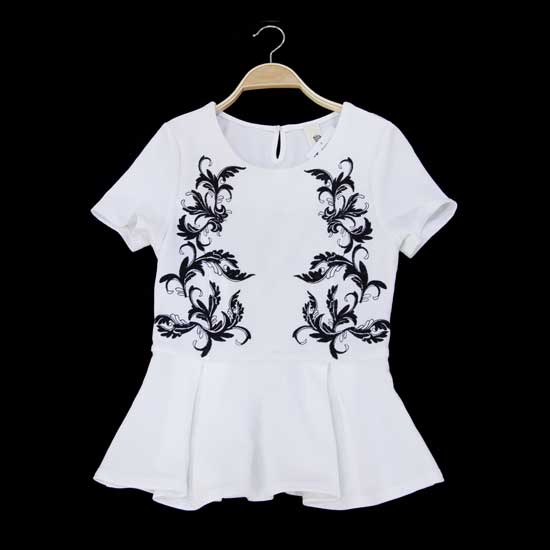 Displayed is a white party dress made of cotton and silk. Featuring tastefully designed patterns in black in the front, this party dress will make you stand out in the crowd with its simplistic yet elegant style. This dress is suitable for amicable night gatherings.
