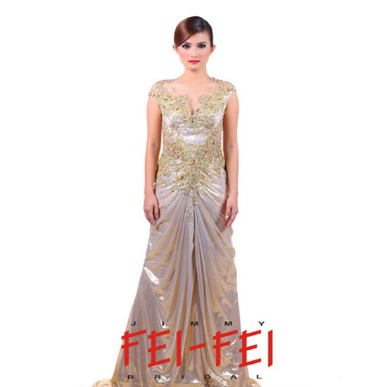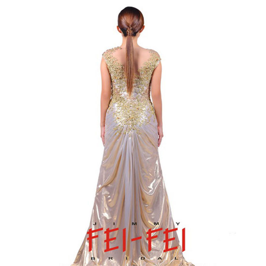 This party dress is designed in a golden color for an eye-catching look. It comes with embroidered details, sequins and crystals for added style. This long party dress is made of quality satin silk for a soft and comfortable touch.