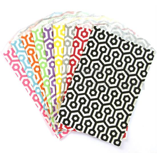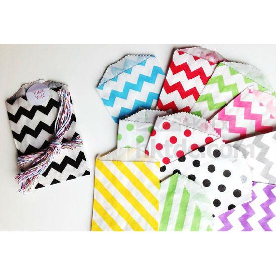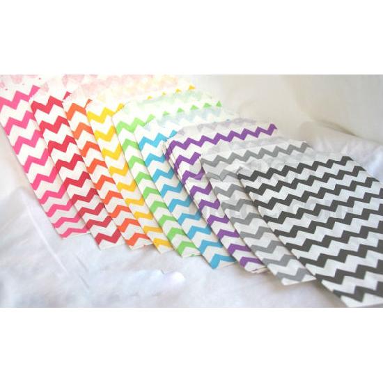 • Rainbow pack medium chevron pattern paper bags, party favors