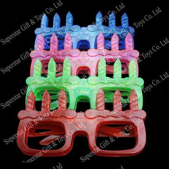 This pair of fashionable glasses is designed in a candle shape. The glasses are ideal for party use. This pair of party glasses comes with LED lights for added fun.