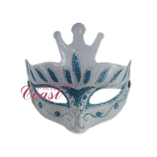 This is a party mask with a gray finish. It is nicely adorned with glittering stones in blue. It is a nice piece of fashion decoration to complete your festive outfit.