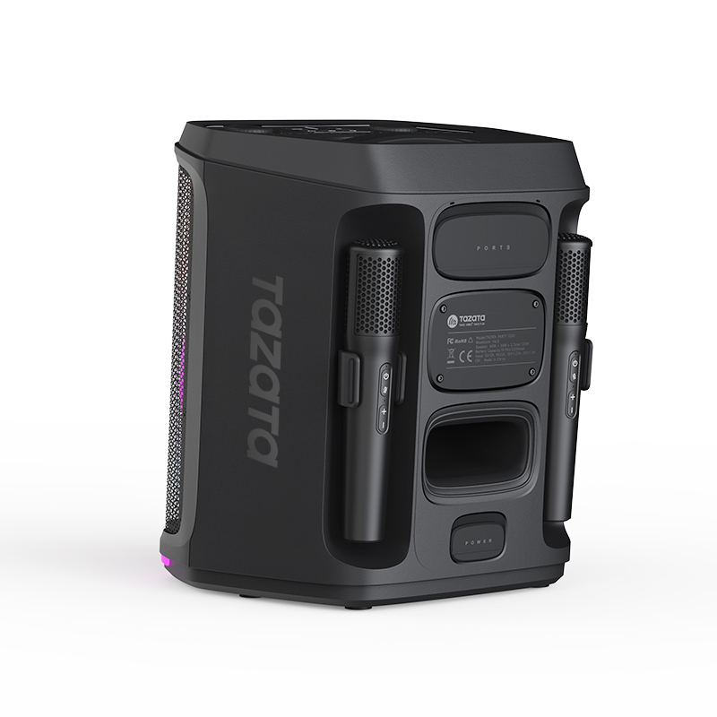 Get ready to be the star of the party with this high-performance Bluetooth speaker—now featuring a dedicated karaoke system. Engineered for both powerful sound and ultimate fun, the back of the speaker is thoughtfully designed with two built-in slots to securely hold a pair of microphones, so you can grab and sing whenever the mood strikes.
