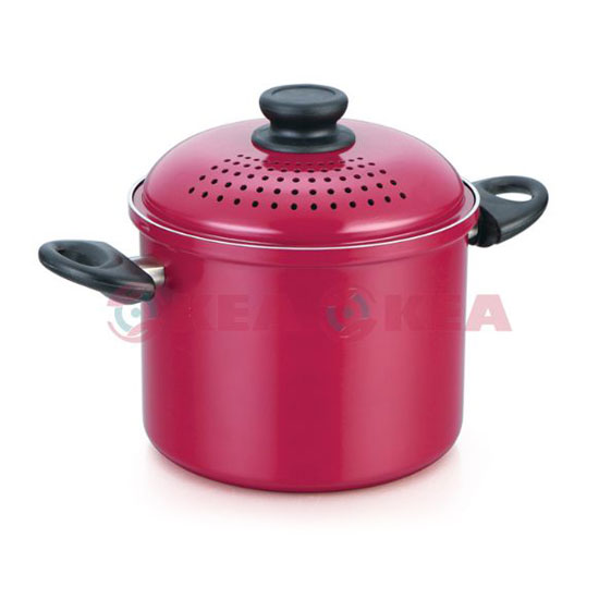 This is a pasta pot coming with just the right depth for you to cook a generous amount of pastas. The lid is designed with many holes to prevent the boiling water from spilling out. It distributes heat evenly and helps you cook tender, delicious pastas.