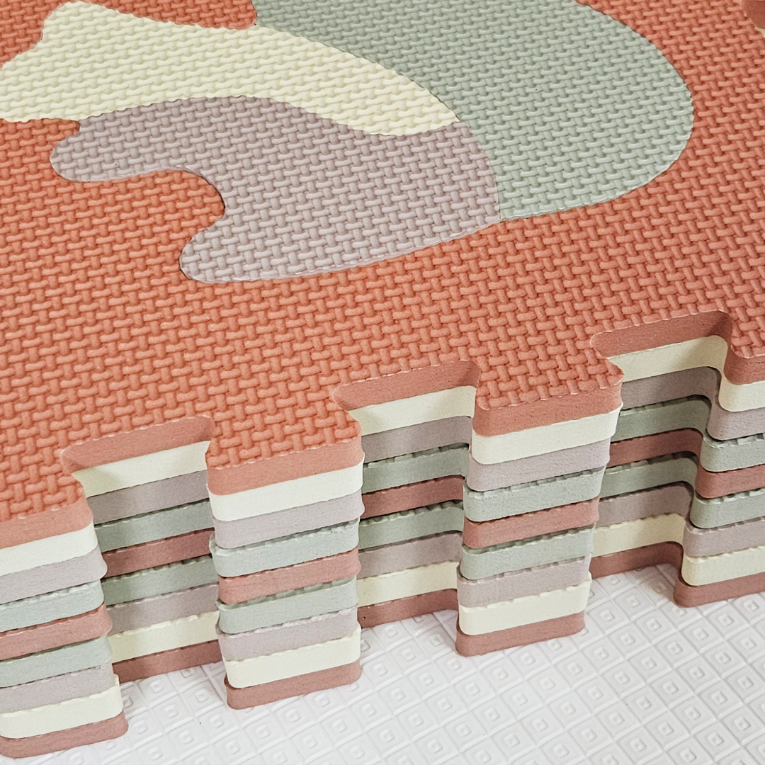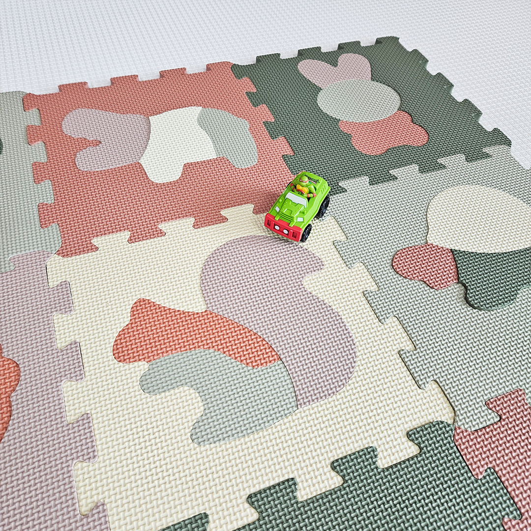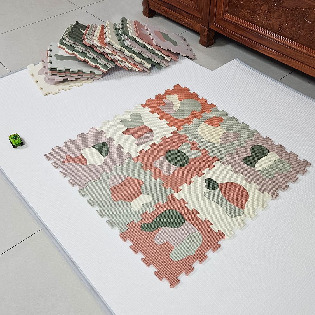 Crafted from non-toxic EVA material (meeting ASTM/CE safety standards), it ensures a secure environment for toddlers’ daily activities. Its interlocking design enables flexible assembly, disassembly and storage, making it suitable for small spaces or temporary use. The anti-slip surface enhances stability during active play, while the wipeable texture simplifies daily maintenance (spills and crumbs can be cleaned in seconds).