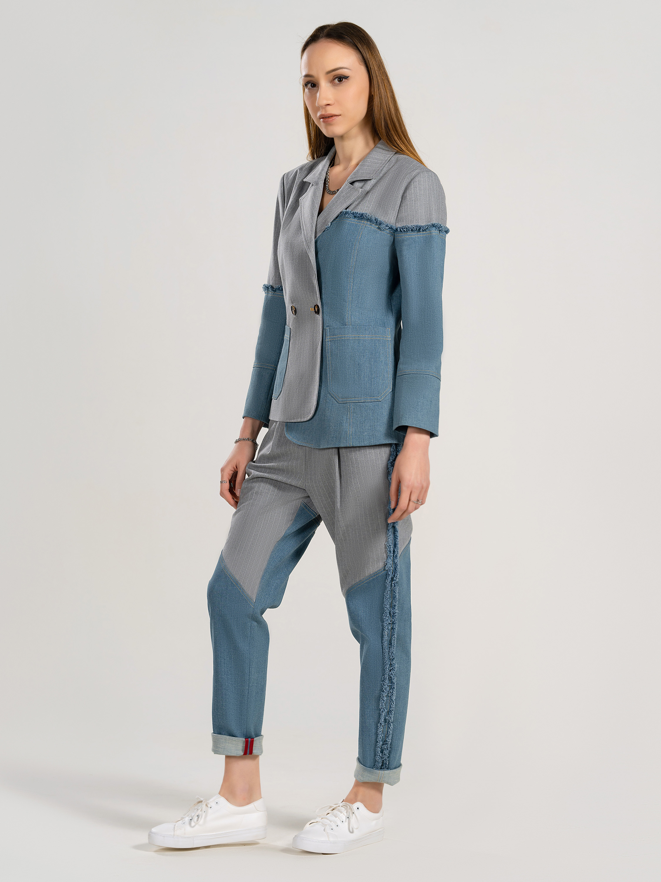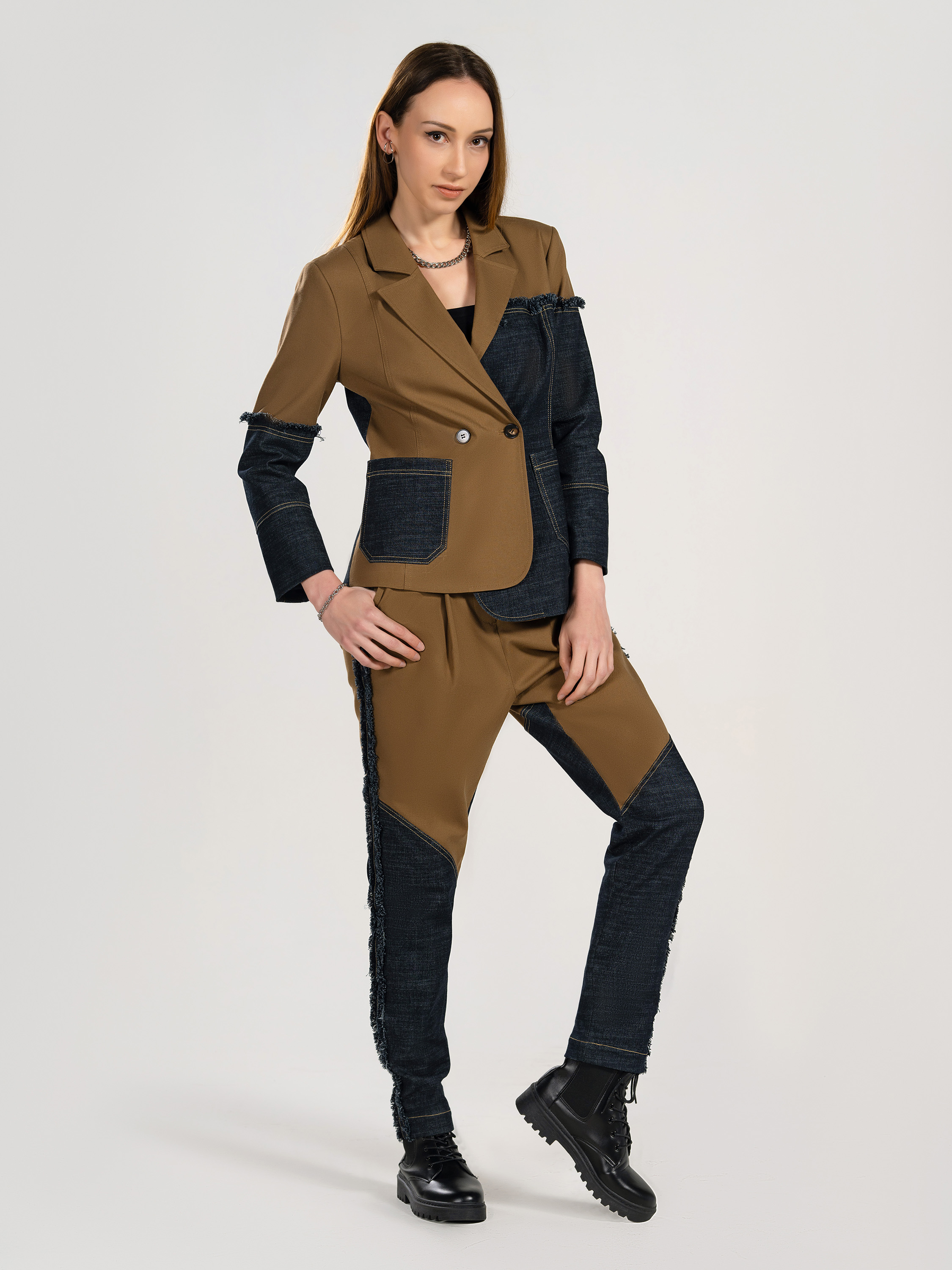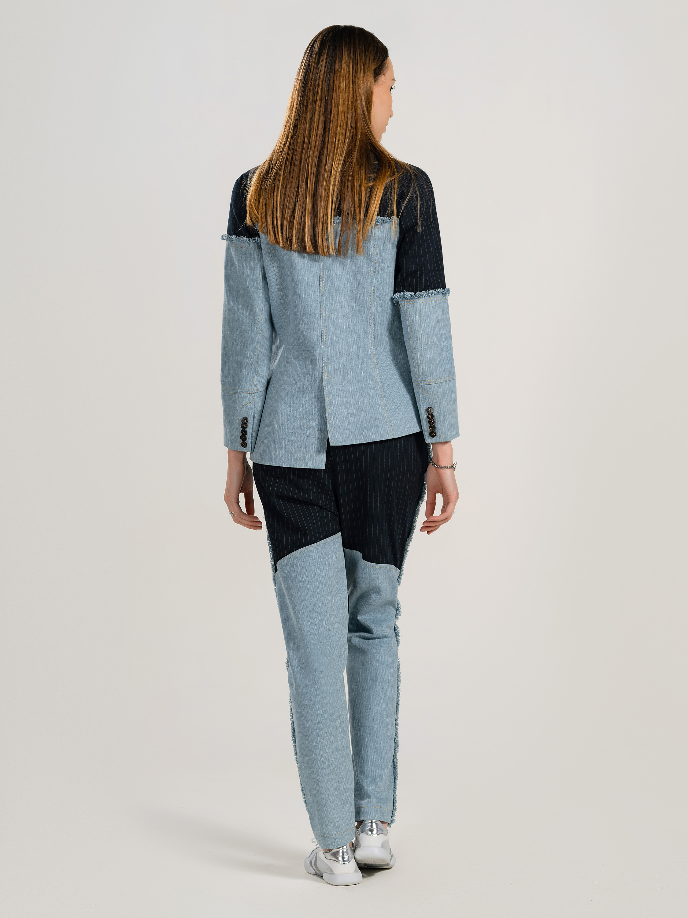 Ladies' 69% Polyester 29% Rayon 2% Spandex Denim Mixing Blazer
