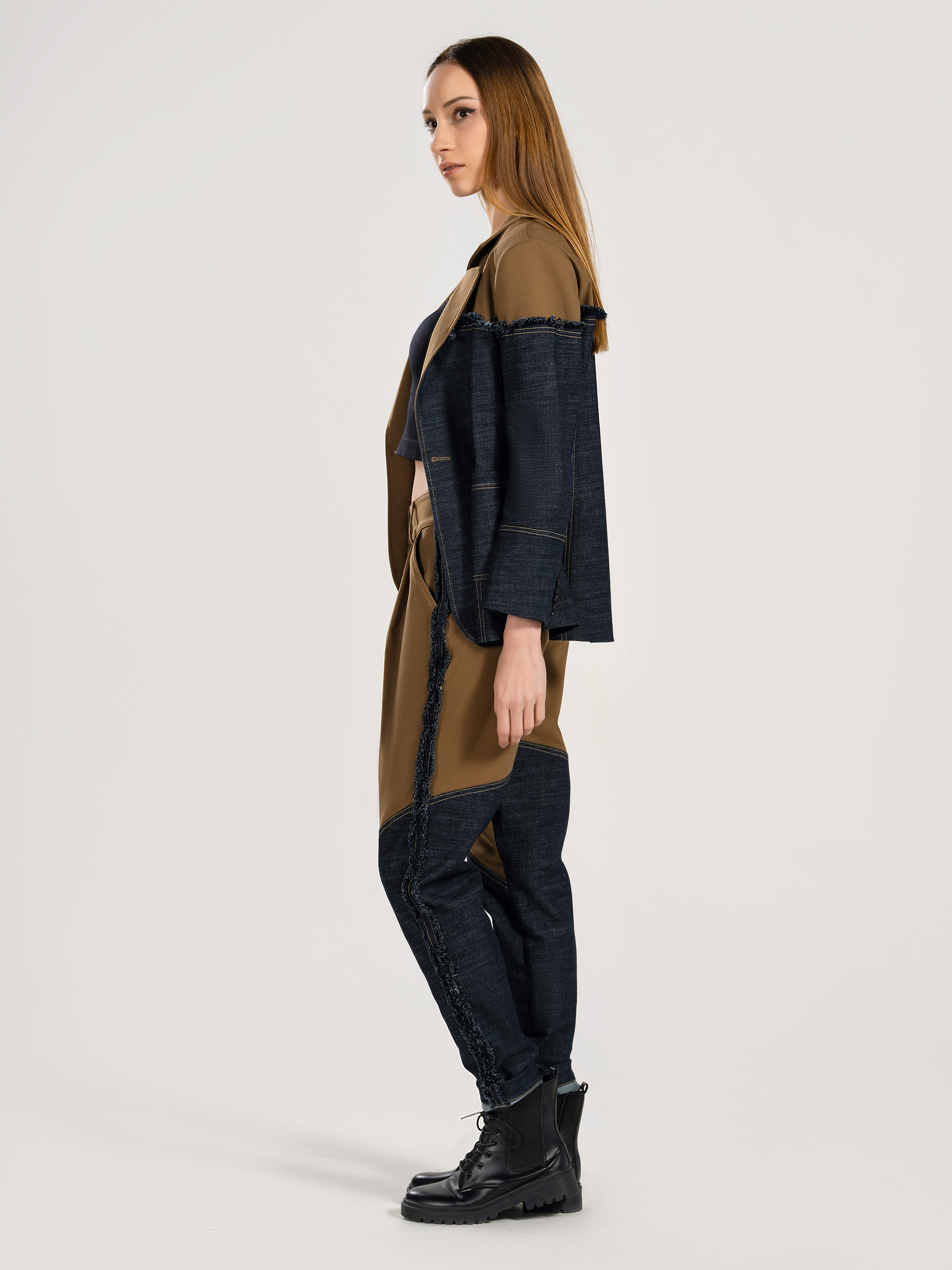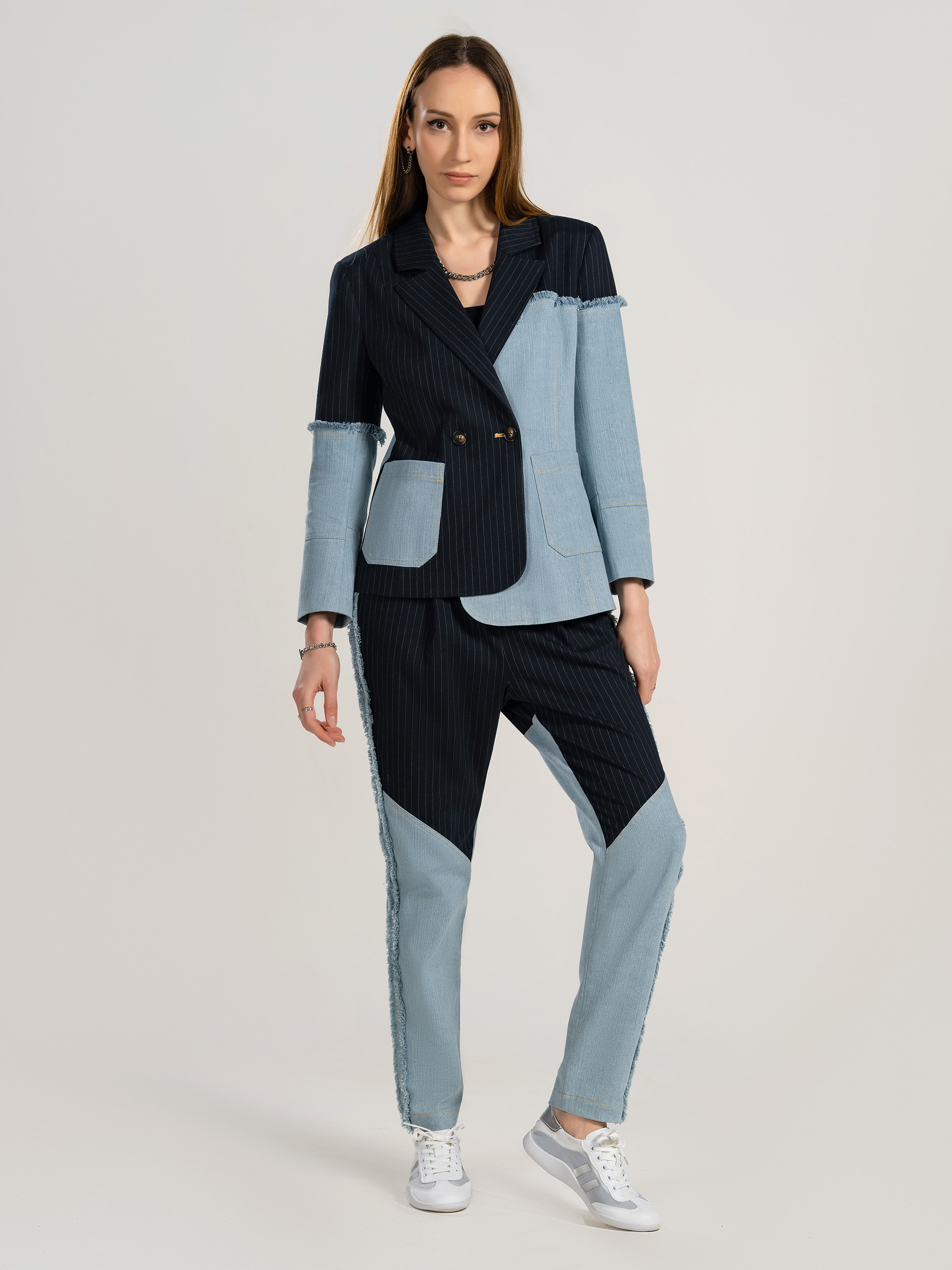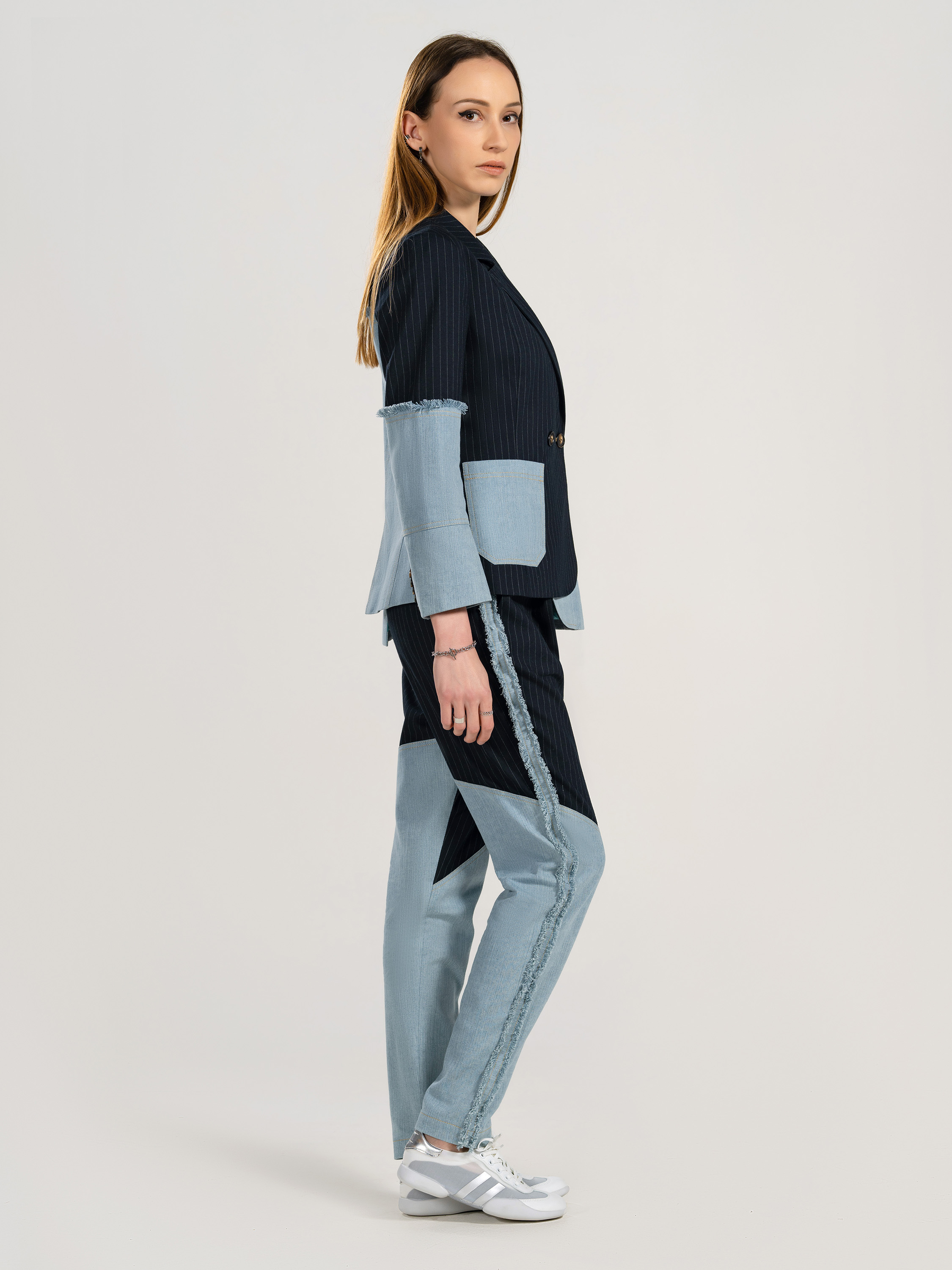 Ladies' 69% Polyester 29% Rayon 2% Spandex Denim Mixing Blazer