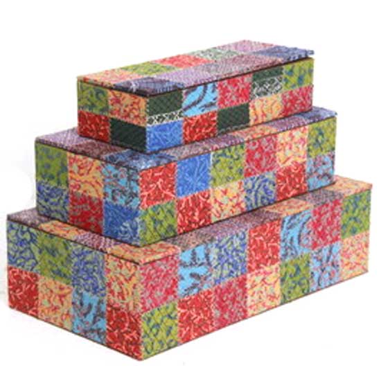 This patchwork box set comes with 3 boxes with batik patchwork pattern in different sizes. The rectangular shape is classical and space saving. This box set is a nice choice to store your personal items neatly.