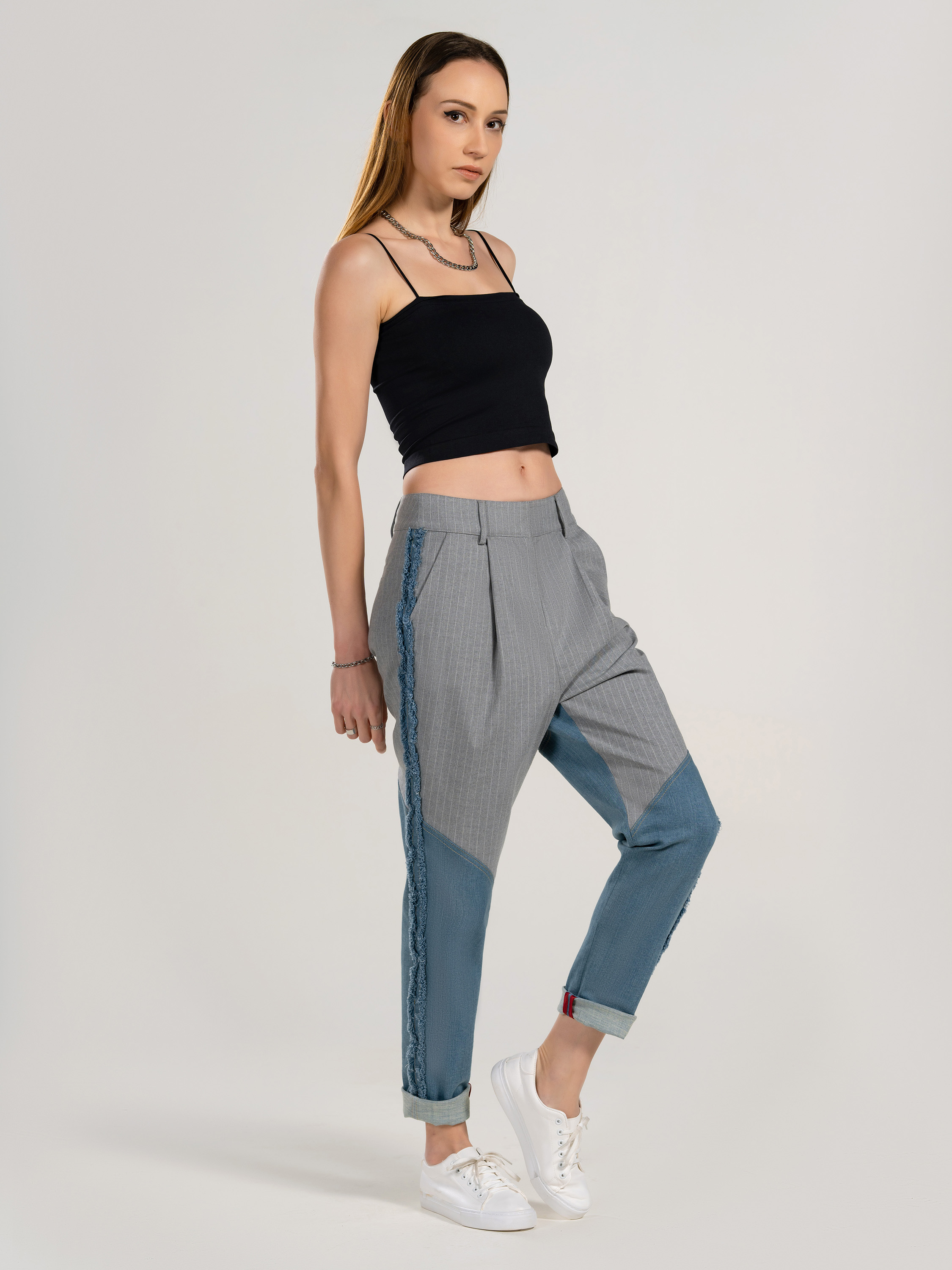 Ladies' 69% Polyester 29% Rayon 2% Spandex Denim Mixing Pant