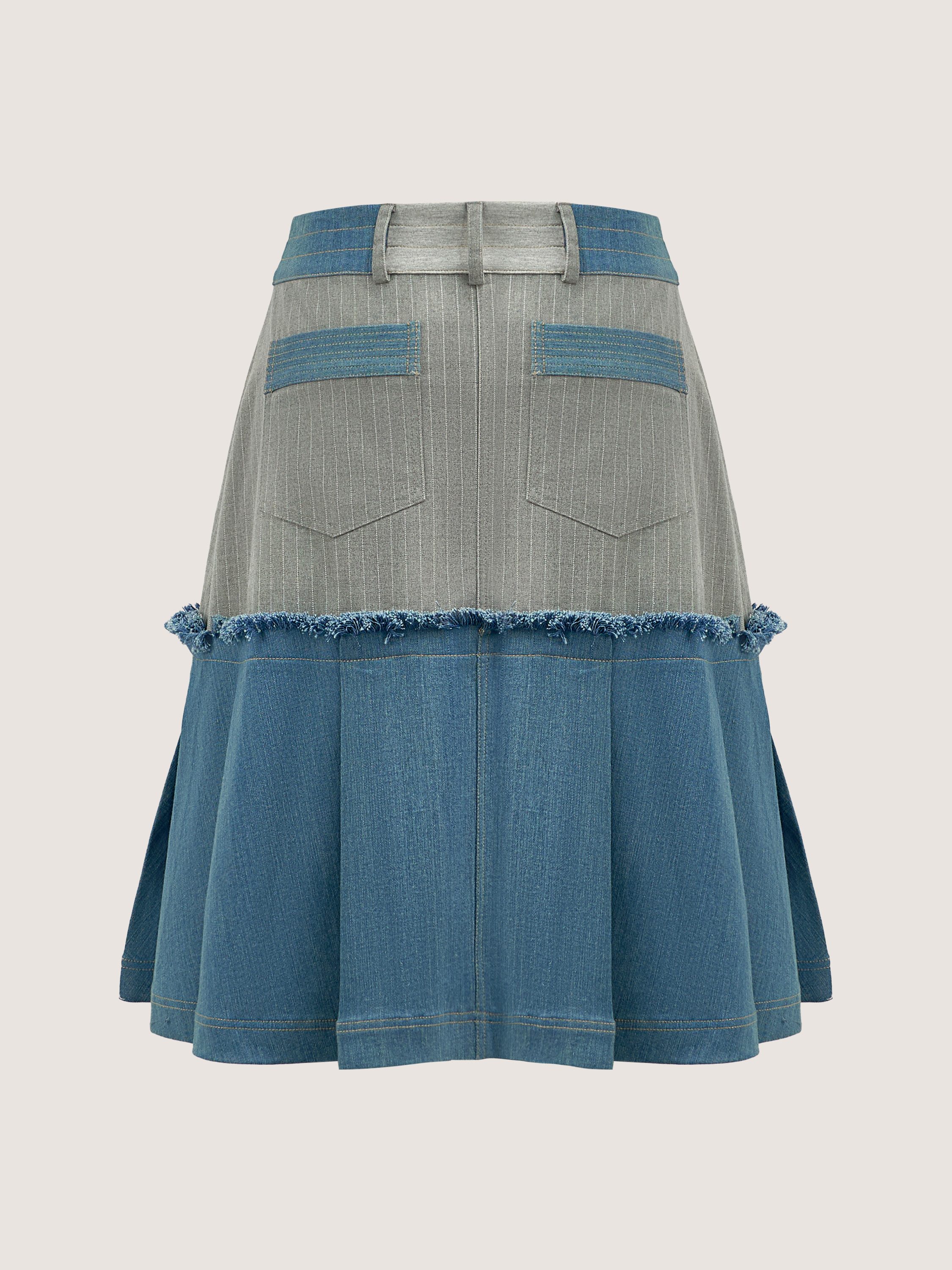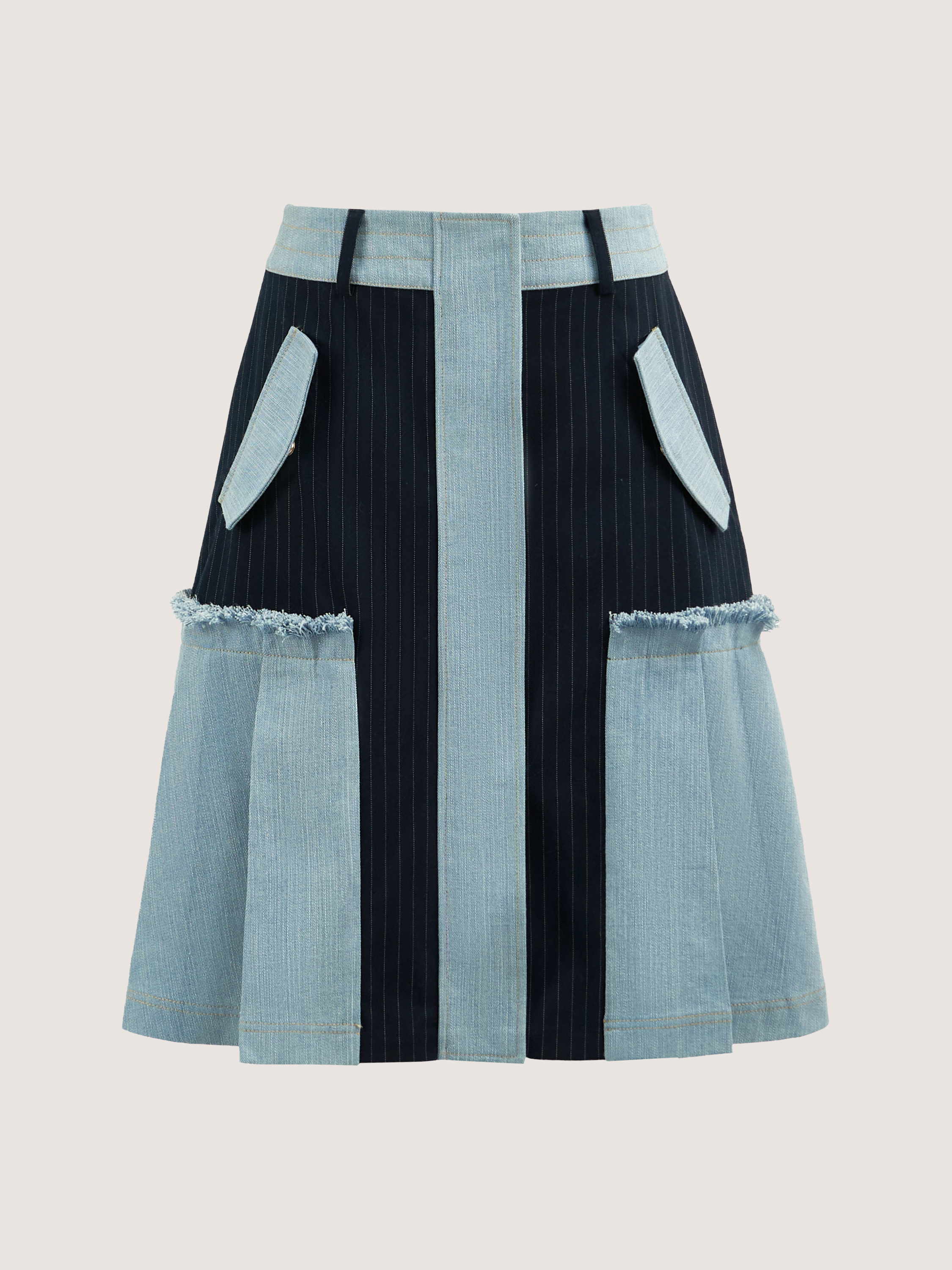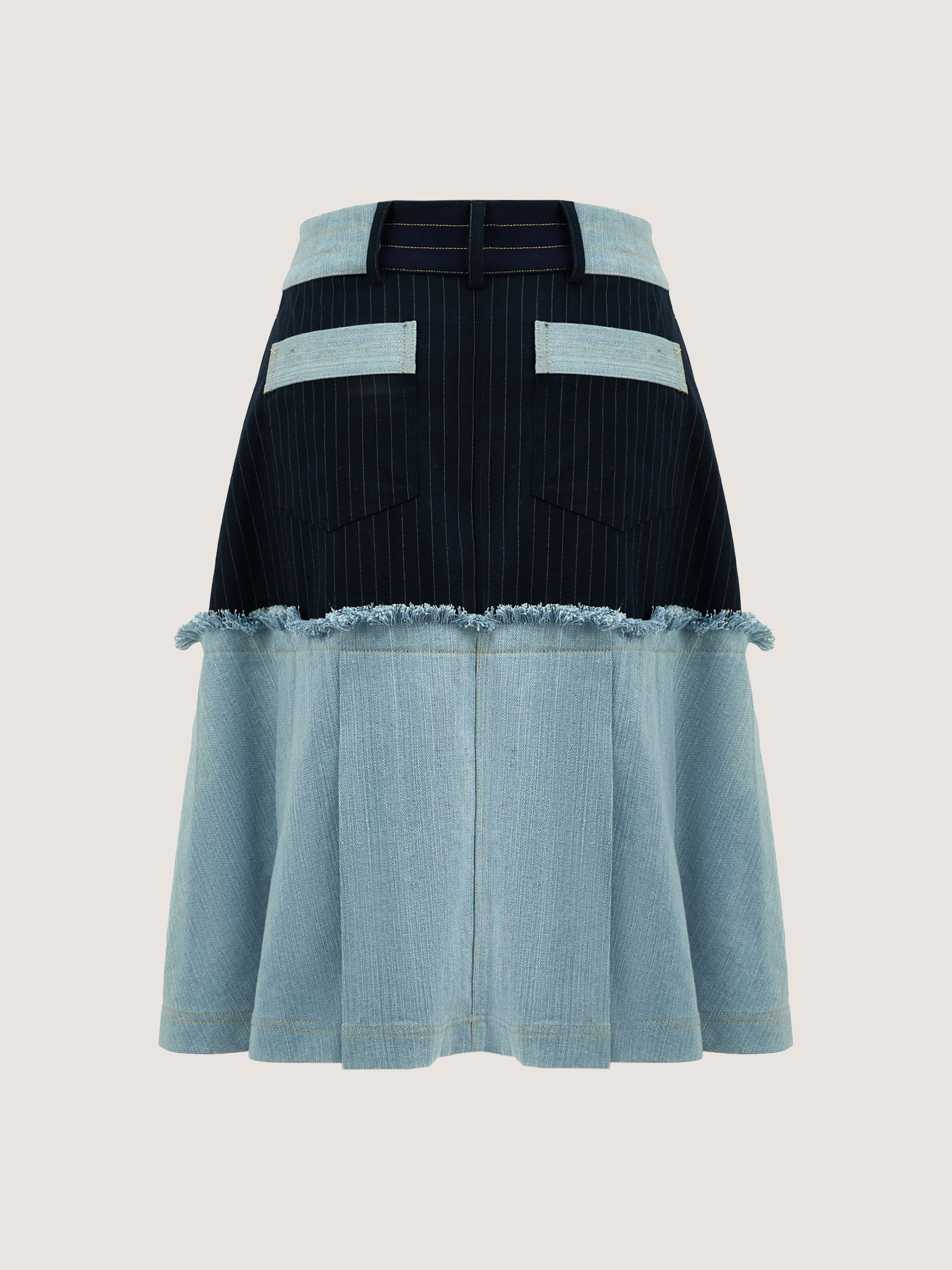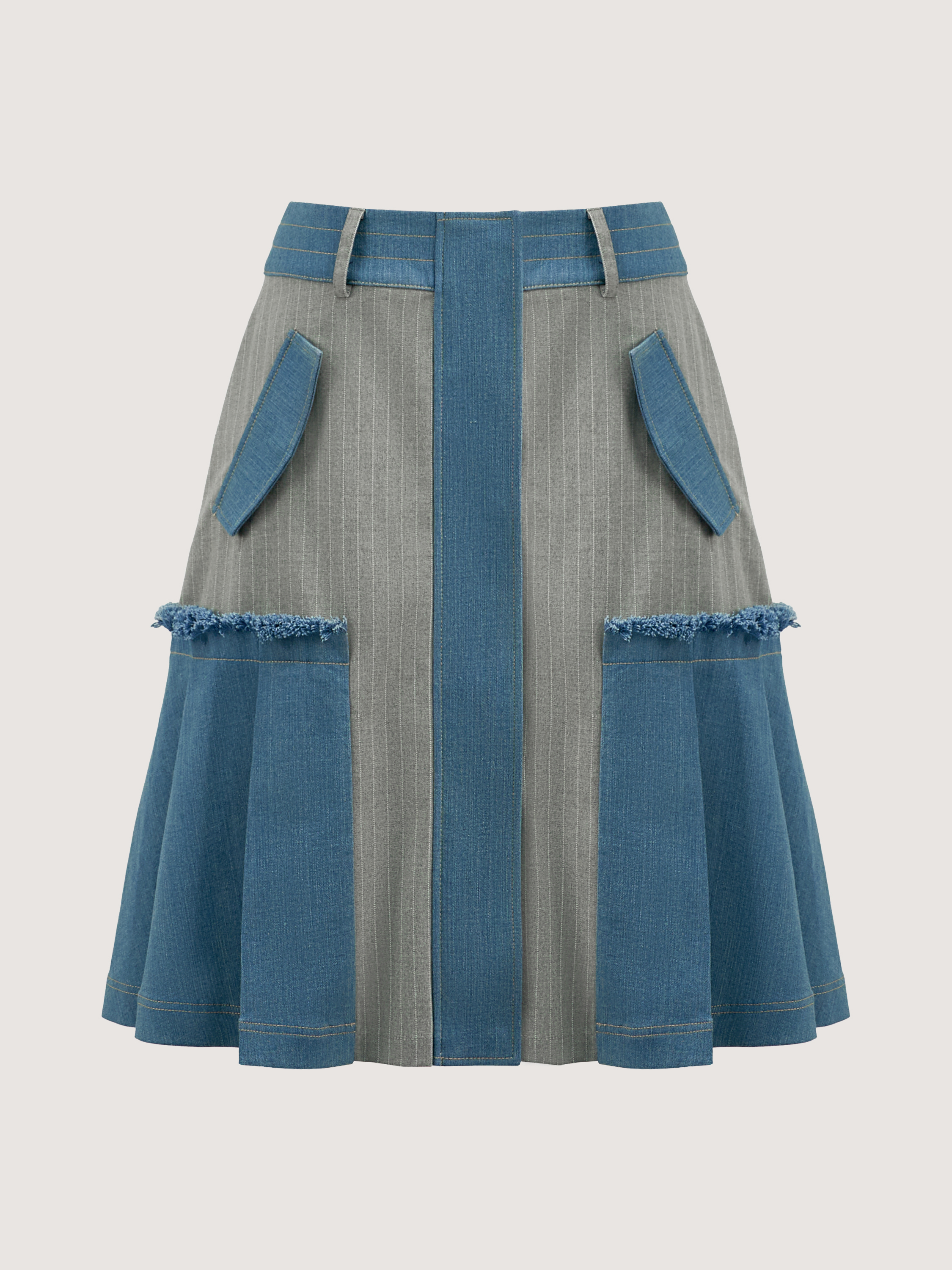 Ladies' 69% Polyester 29% Rayon 2% Spandex Denim Mixing Skirt