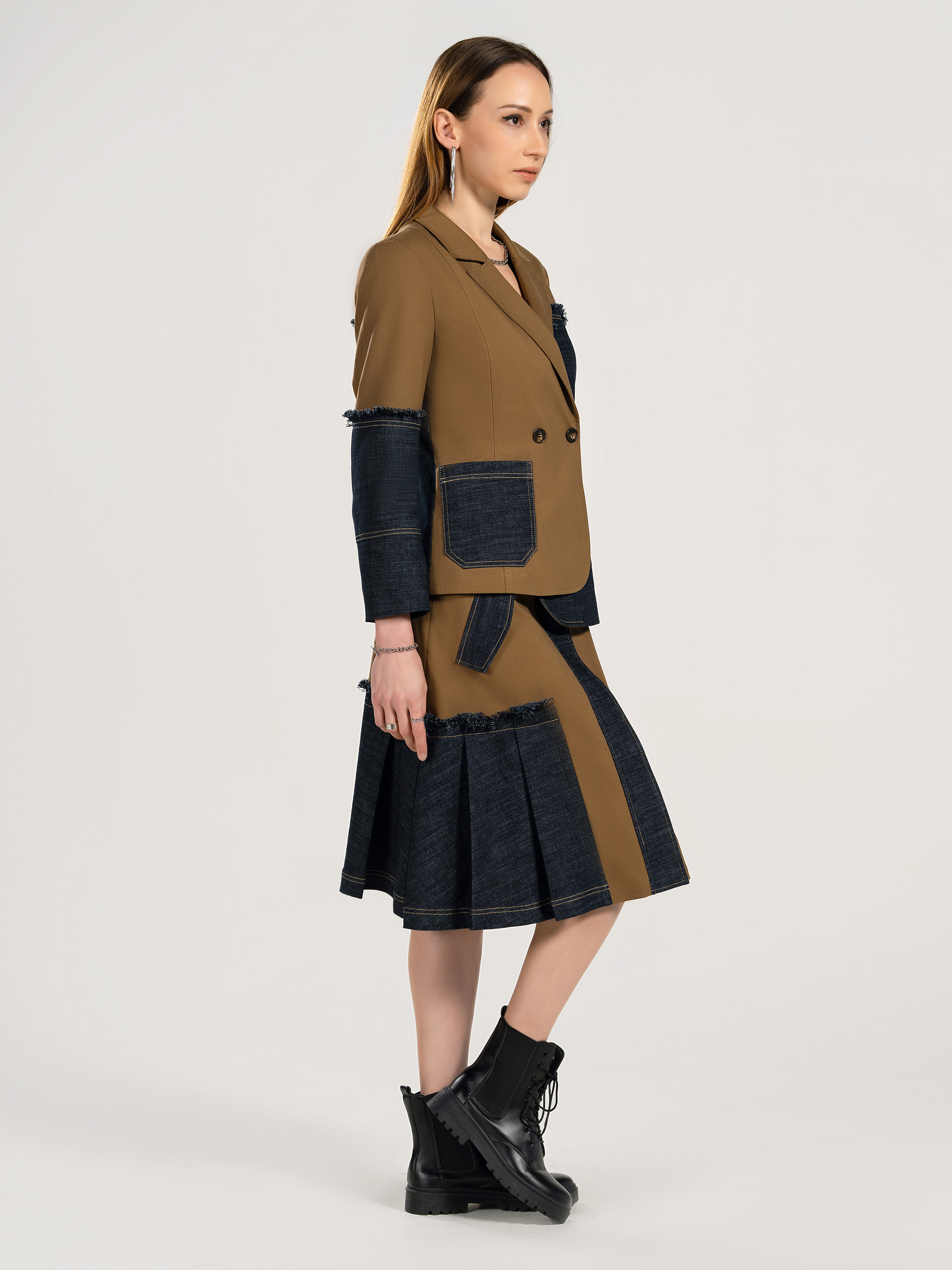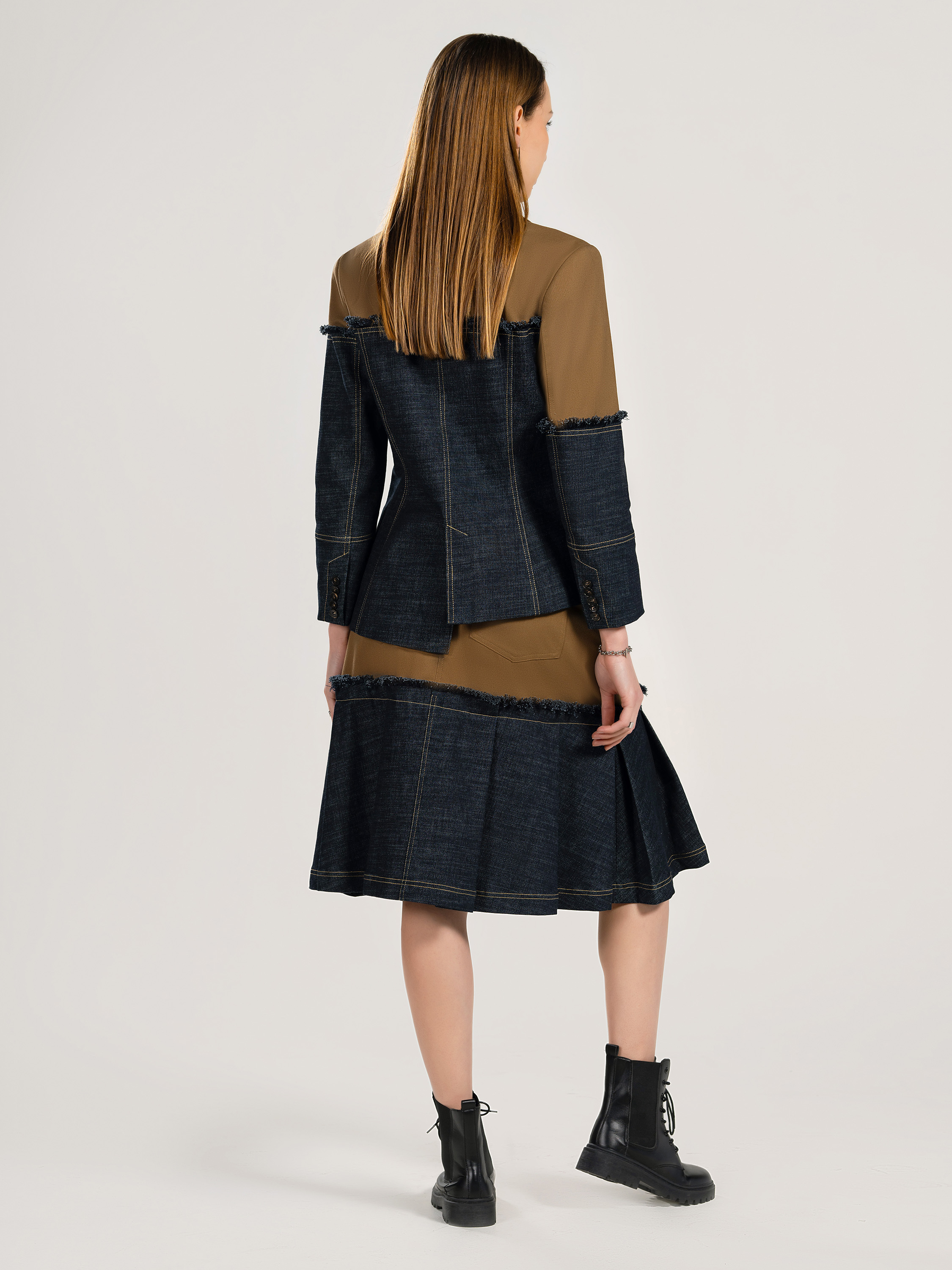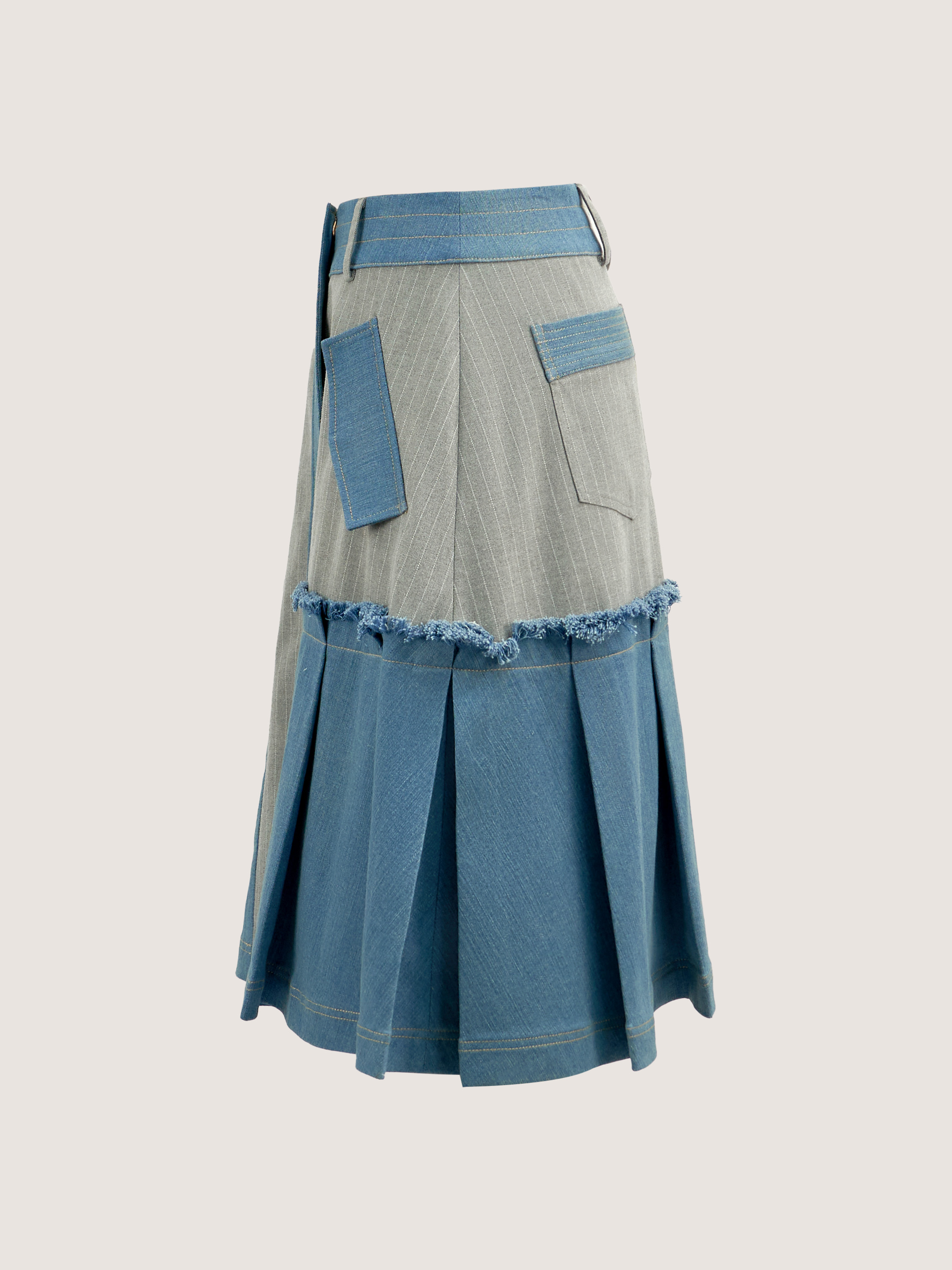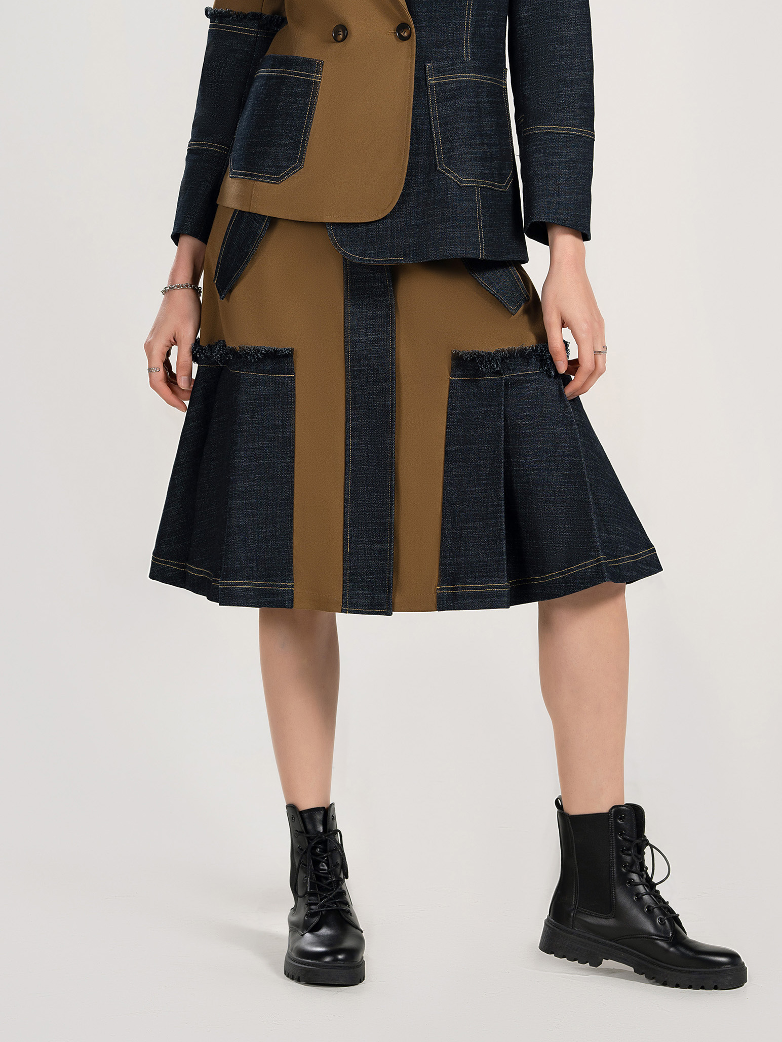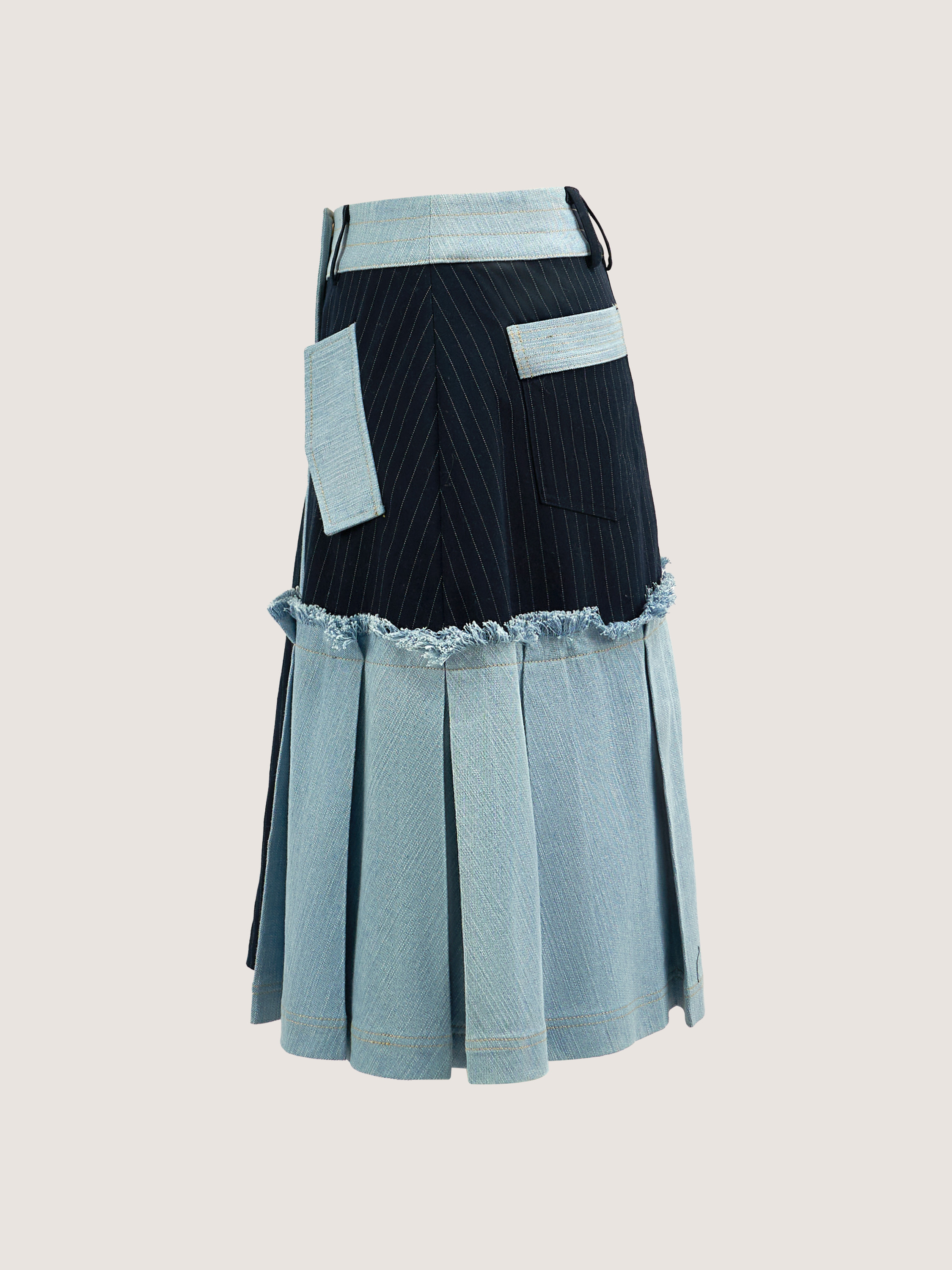 Ladies' 69% Polyester 29% Rayon 2% Spandex Denim Mixing Skirt