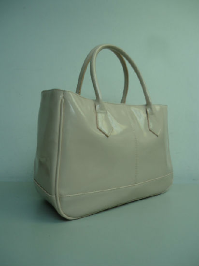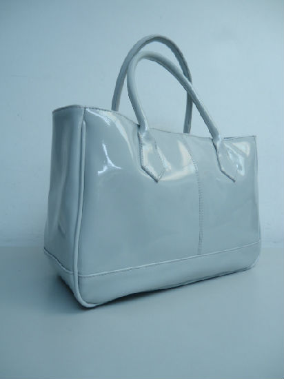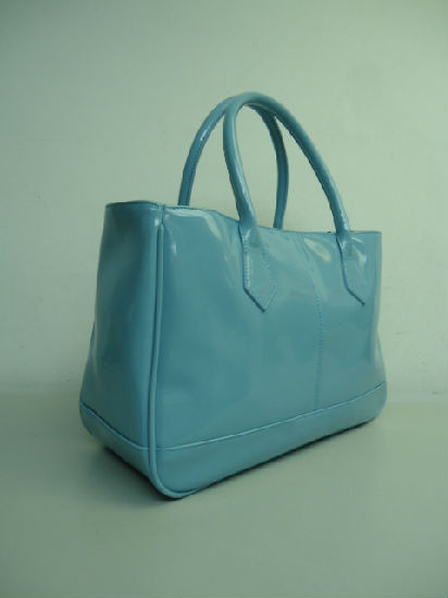Steeping in an idyllic pastel tone, this patent PU handbag highlights two tubular handles and takes on a classic rectangular outline with discreet piping to add structure. Its roomy compartment is further accented with polka dot printed lining for a youthful feel.