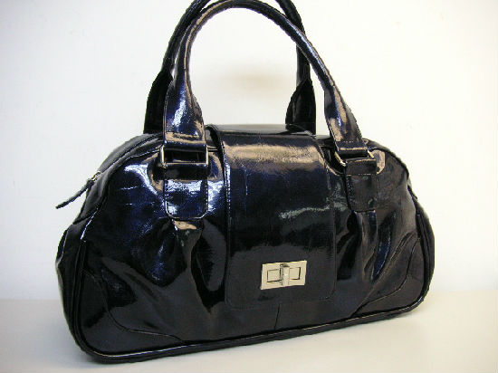 • Turn lock buckle patent PVC handbag.