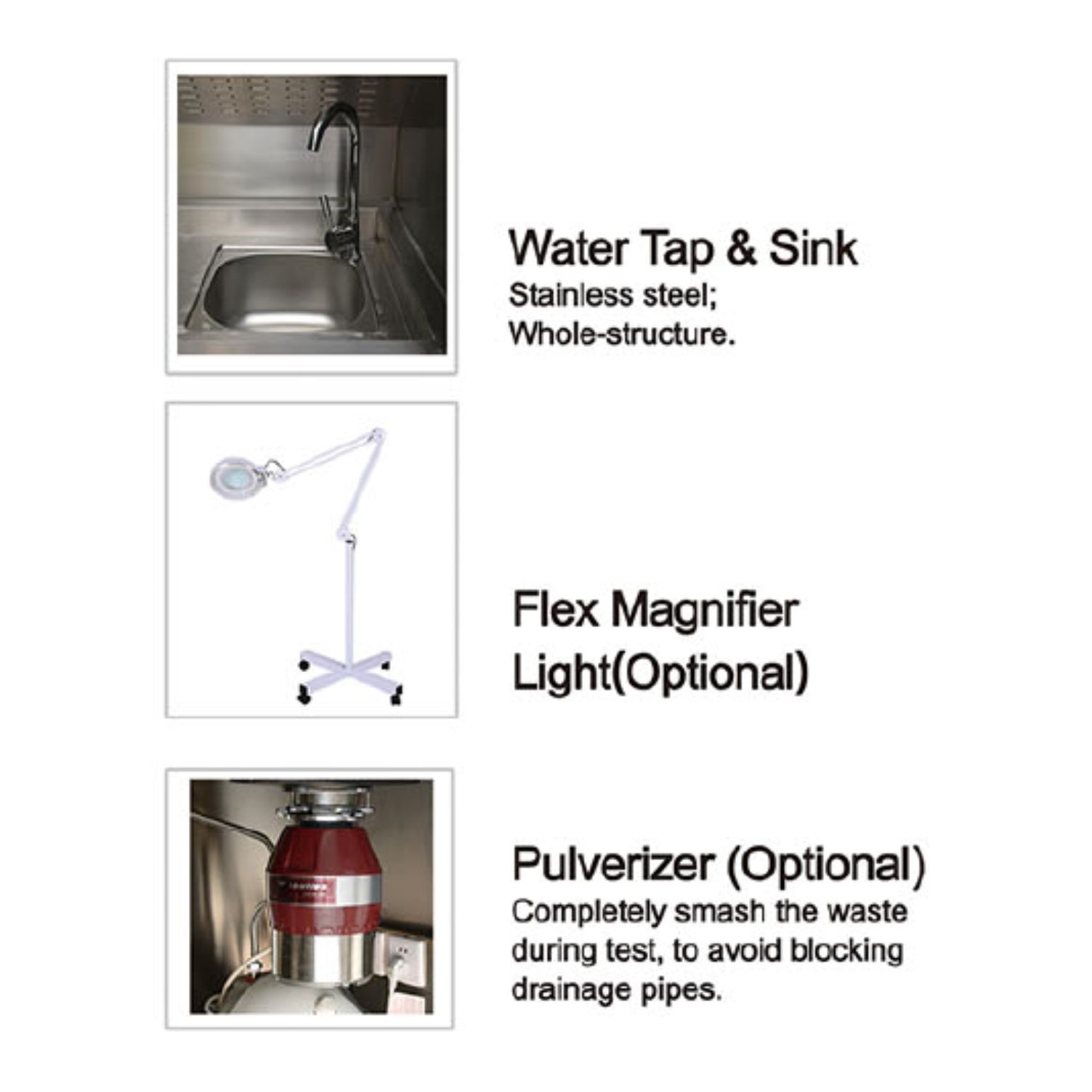 6. Optional pulverizer can completely smash the waste during test, to avoid blocking drainage pipes.