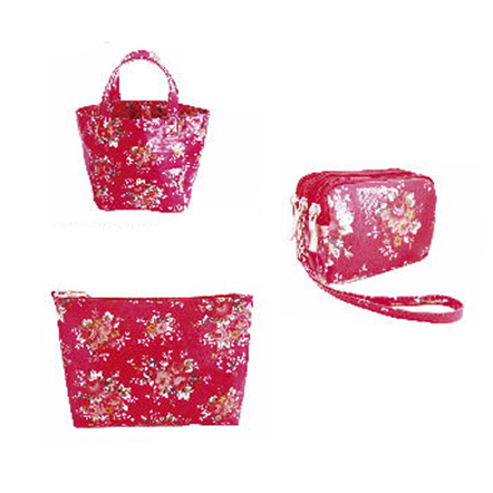 Displayed here is a cosmetic bag with detailed craftsmanship. The floral patterns add an elegant accent to the makeup bag. This cosmetic bag is great for keeping your personal items for on-the-go use.