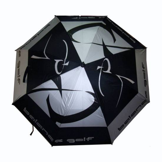 This umbrella features an automatic-open function for convenience. It possesses fiberglass shaft and ribs, as well as a rubber straight handle. The silvery coated canopy gives this umbrella a cool look on the golf field.