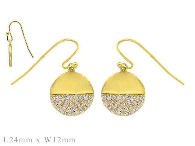 This fish hook earring is truly a staple for any jewelry wardrobe. It presents a petite, round dangling part, whose lower half is paved and packed with round glittering stones for a sparkling effect. Coated with 1 micron gold plating, this drop disk earring looks luxurious and charming on any of your ensembles.