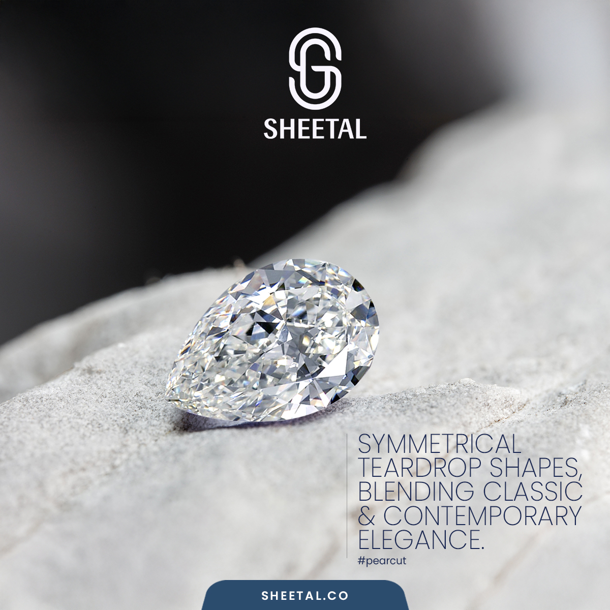 Sheetal Group presents the Pear Cut diamond - where symmetry meets brilliance. Its teardrop shape balances classic beauty with a modern edge, creating a radiant expression of style.