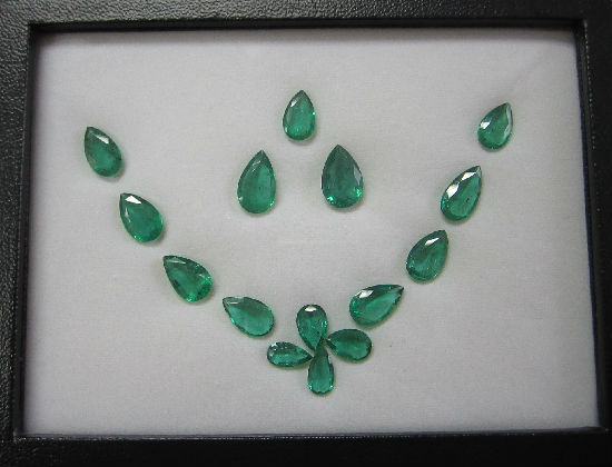 • 15-piece Zambian emerald set.
