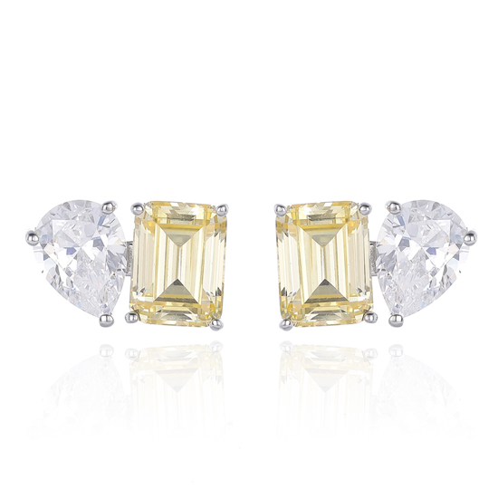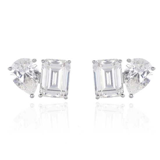 Pear Shape And Emerald Cut Diamond G Cubic Zircon Rhodium Silver Earring