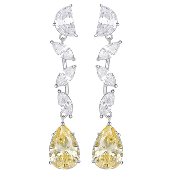 Pear Shape And Half Moon Shape Diamond G Cubic Zircon Rhodium Silver Earring