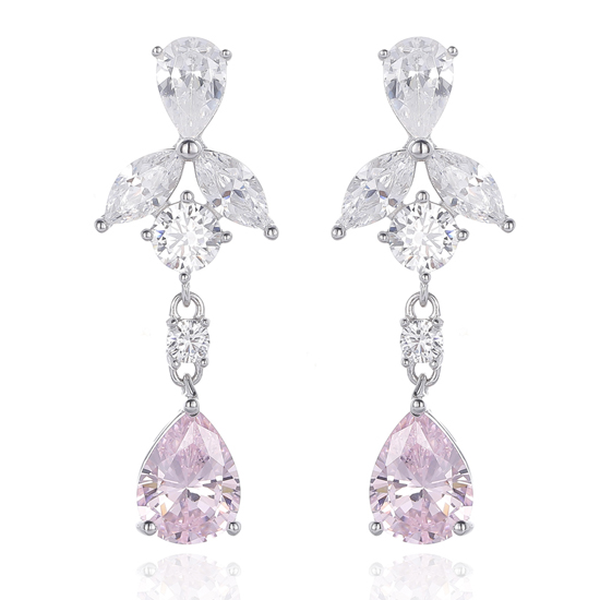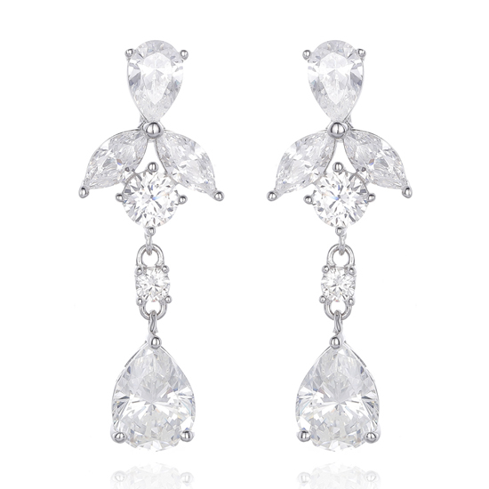 Pear Shape And Marquise Diamond G Cubic Zircon Rhodium Silver Earring