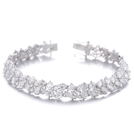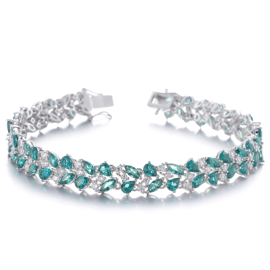 Pear Shape And Marquise Green Nano Rhodium Silver Bracelet