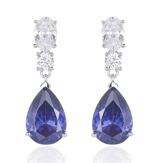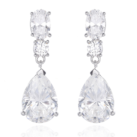 Pear Shape And Oval Shape Diamond G Cubic Zircon Rhodium Plating Silver Earring