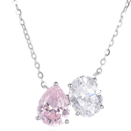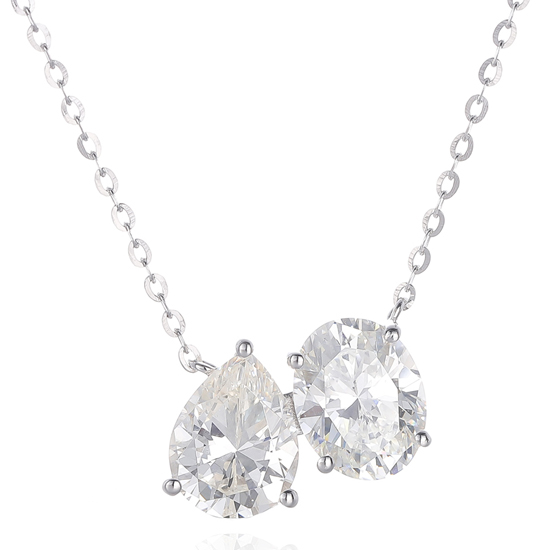 Pear Shape And Oval Shape Diamond G Cubic Zircon Rhodium Silver Necklace