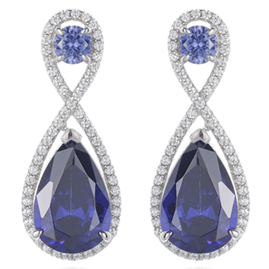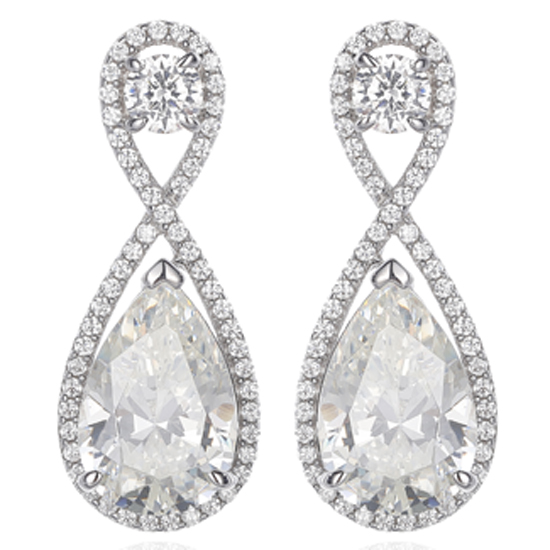 Pear Shape And Round Diamond G Cubic Zircon Rhodium Silver Earring