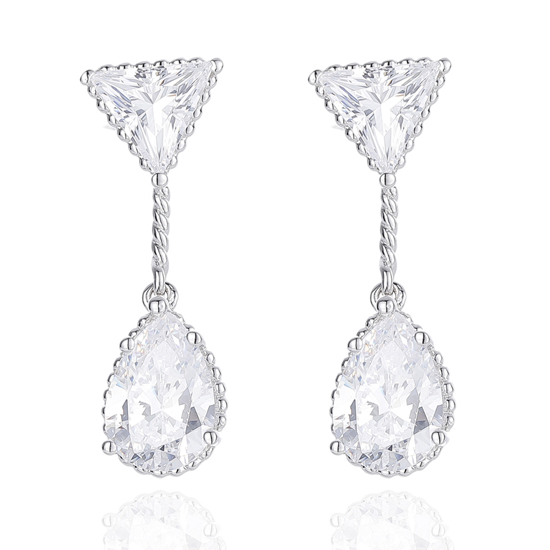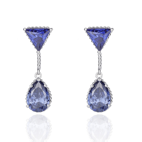 Pear Shape And Trillion Tanzanite Cubic Zircon Rhodium Silver Earring
