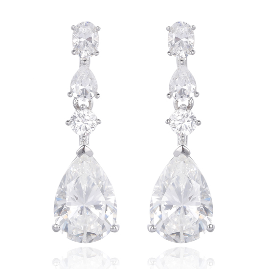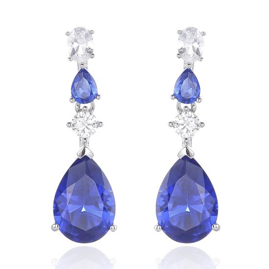 Pear Shape Blue Nano And Oval Shape White Cubic Zircon Rhodium Silver Earring