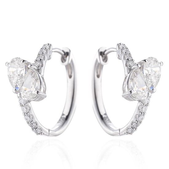 Pear Shape Diamond G And Round White Cubic Zircon Rhodium Silver Earring