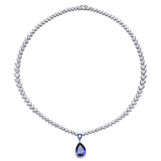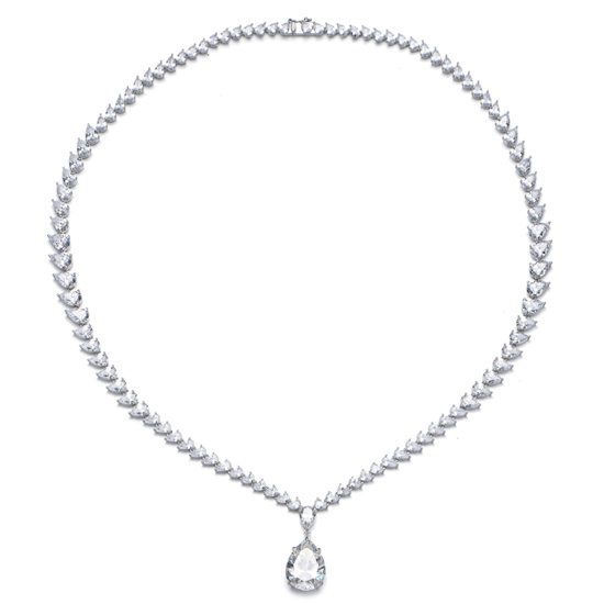 Pear Shape Diamond G And White Cubic Zircon Rhodium Silver Necklace